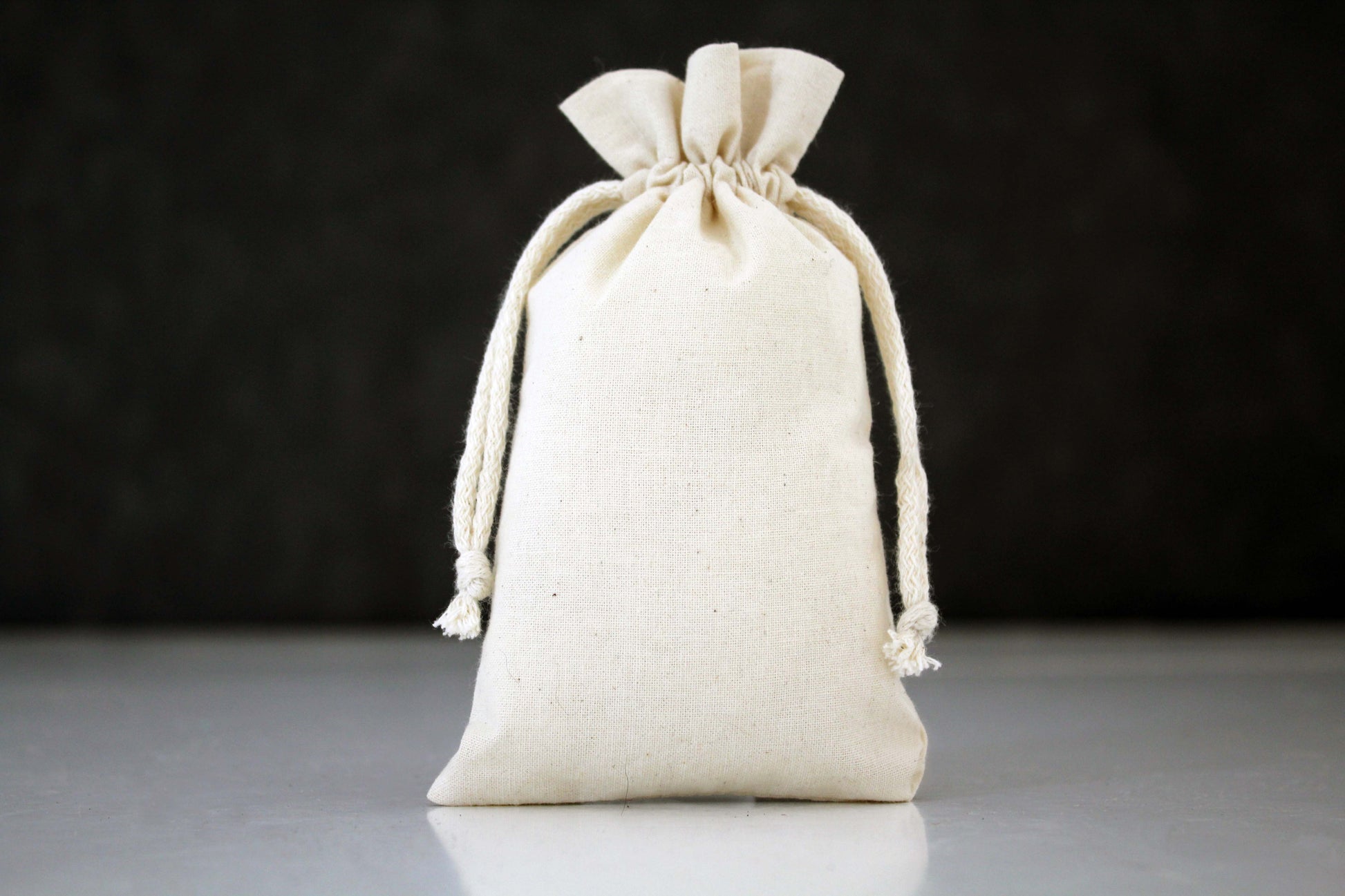 Sacchetto in cotone con chiusura caramella con 2 corde.